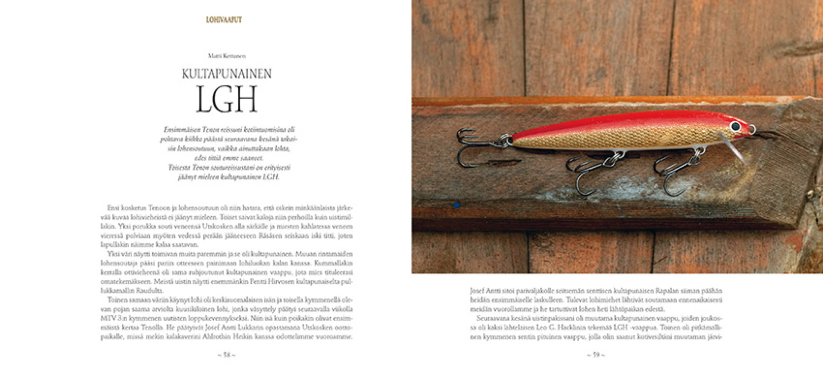 Olen tehnyt kirjan yhteistyössä Matti Kettusen kanssa. Hänen tarinoissaan korostuvat Ala-Tenon ottivaaput ja Vetsikon alueen soutupaikat.